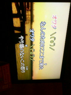 オワタ\(^0^)/ 大好きな曲です。 親友引き連れカラオケです(・∀・)♪ JYOを発見して興奮しました!! しゅなめり!ついに見つけたよ!! 何歌ったかいまいち覚えていませんが 楽しかったです。 あとアイスココアが旨かった カフェオレはイマイチ・・・ うん(´ω`) なんか友達といっしょなら何でも楽しいです。 また行きたいな~ てか妹連れていかなきゃΣ(・∀・) コメント返し 絵は認めてもらうために描くんじゃない 自己満足で描くんだ(・ω・´)!! 更新期待してるよ~